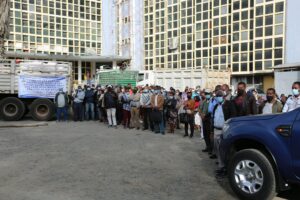 በጦርነቱ ለተፈናቀሉ እና ጉዳት ለደረሰባቸው ወገኖች ከድርጅቱ አመራርና ሰራተኞች የተበረከቱ የድጋፍ ቁሳቁሶችን በስፍራው በመገኘት ለማስረከብ የተቋቋመው ግብረሃይል በደማቅ አሸኛኘት ወደ ስፍራው አቀና፡፡